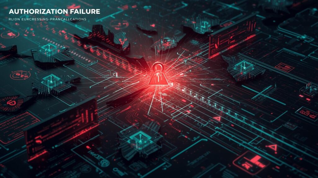 ┌─────────────────────────────────┐ ┌─────────────────────────────────┐ │ PROPER SYSTEM │ │ BROKEN SYSTEM │ ├─────────────────────────────────┤ ├─────────────────────────────────┤ │ User Request → AuthN → AuthZ │ │ User Request → AuthN → Action │ │ │ │ │ │ │ │ │ │ ▼ ▼ │ │ ▼ ▼ │ │ ┌─────────────┐ ┌─────────────┐ │ │ ┌─────────────┐ ┌─────────────┐ │ │ │ Validate │ │ Check │ │ │ │ Validate │ │ No AuthZ │ │ │ │ Identity │ │ Permissions│ │ │ │ Identity │ │ Check │ │ │ └─────────────┘ └─────────────┘ │ │ └─────────────┘ └─────────────┘ │ │ │ │ │ │ │ │ │ │ └──────┬───────┘ │ │ └──────┬───────┘ │ │ ▼ │ │ ▼ │ │ ┌─────────────┐ │ │ ┌─────────────┐ │ │ │ Action │ │ │ │ Action │ │ │ │ Controlled │ │ │ │ Uncontrolled│ │ │ └─────────────┘ │ │ └─────────────┘ │ └─────────────────────────────────┘ └─────────────────────────────────┘